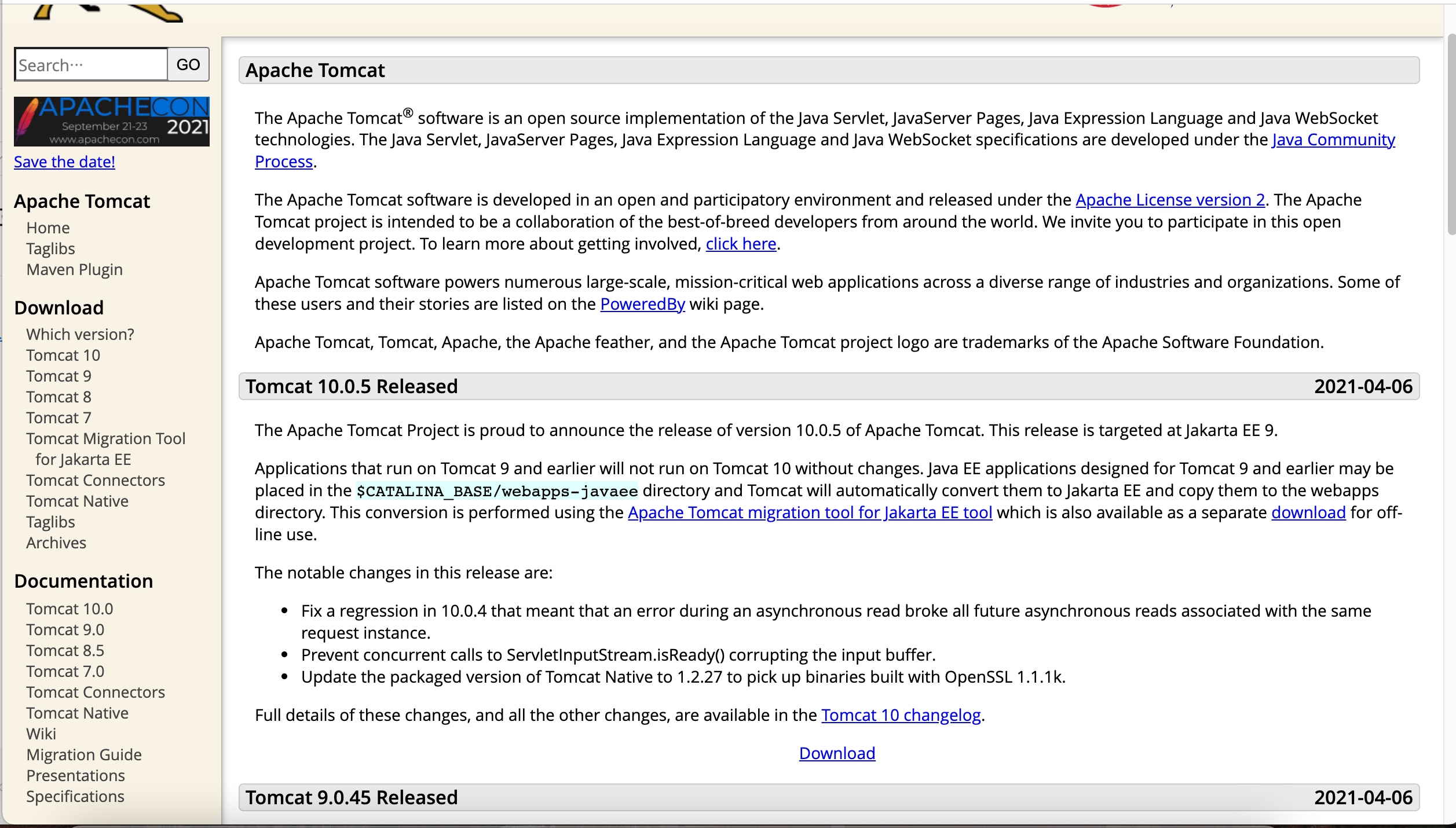 1. http://tomcat.apache.org에서 Tomcat을 다운받는다.