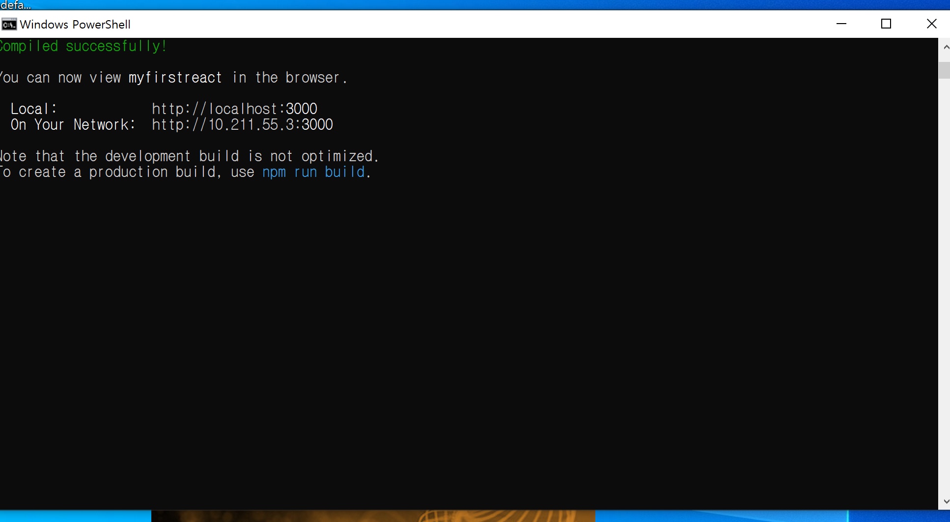 - (디렉토리 이동) cmd> cd myfirstreact / (npm시작~) cmd> npm start